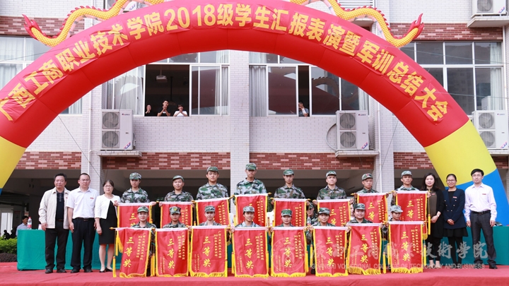 列隊(duì)檢閱完畢,陳宗沛大隊(duì)長(zhǎng)宣讀學(xué)院2018級(jí)學(xué)生軍訓(xùn)會(huì)操評(píng)比獲獎(jiǎng)名單。李維副院長(zhǎng)、陳宗沛大隊(duì)長(zhǎng)以及各系部主任分別為軍訓(xùn)獲獎(jiǎng)班級(jí)頒發(fā)錦旗。緊接著教官向全體師生展示了列隊(duì)、擒拿格斗中的倒功和軍體拳等表演。教官們動(dòng)作整齊,雄姿英發(fā),軍體拳聲聲有力,精彩的摔擒表演更是博得滿場(chǎng)喝彩。