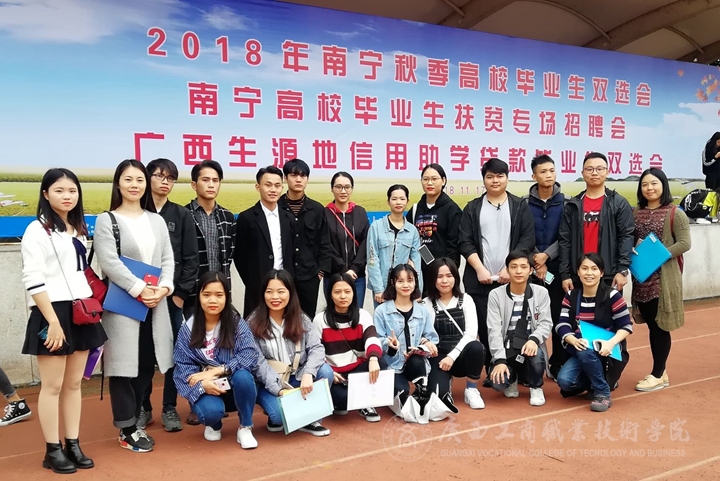 自治區教育廳于2018年11月17日在南寧職業技術學院舉辦2018年廣西生源地信用助學貸款畢業生第二場秋季雙選會,我院積極組織一百多名2019屆畢業生參加,各系就業干事、輔導員以及就業指導中心老師在現場為畢業生提供就業服務,鼓勵學生樹立自信接受企業遴選,幫助學生做出人崗匹配的選擇。