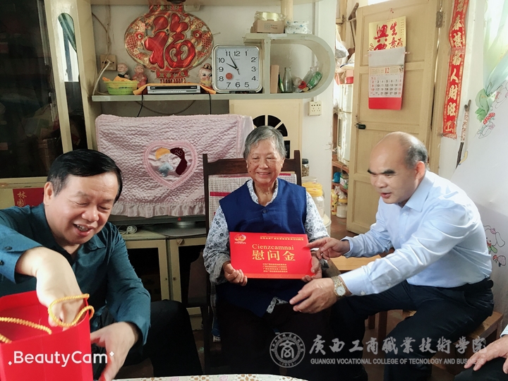 甲子輝煌,八桂飄香。在自治區成立60周年大慶前夕,自治區糧食局和物質儲備局領導邱東副巡視員一行在我院黨委書記覃武云同志陪同下,走訪慰問我院離休干部文九齡和巫賽英兩位同志。向他們致以崇高敬意和誠摯問候,感謝他們數十年為糧食事業、教育事業發展作出的貢獻,并送去慰問金和慰問品,把黨和政府的關懷及時送到老黨員老同志手中。