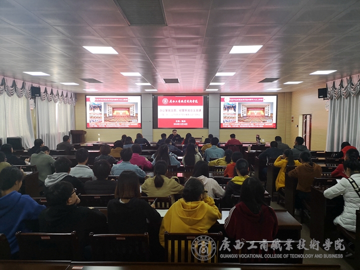 2018年12月18日下午,學院院長陳杰同志在2119視頻會議室為辦公室黨支部、經管系黨總支上黨課。此次黨課由辦公室黨支部書記覃遠霞主持,辦公室黨支部全體黨員、經管系黨總支教師黨員、學生黨員及入黨積極分子參加了此次黨課的學習活動。