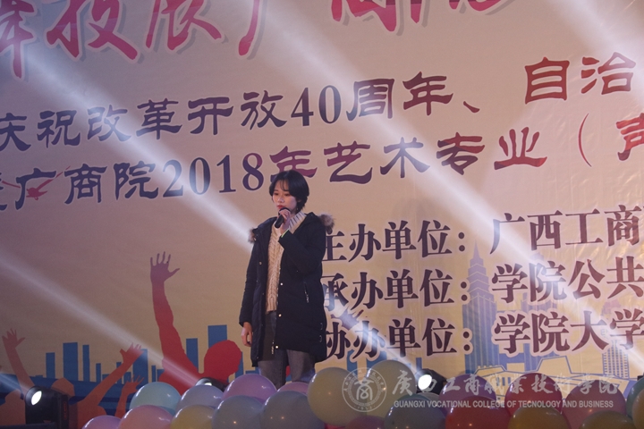 近日,我院在鵬飛校區(qū)文體館二樓舉辦了 “歌舞技展廣商院,奏響時代新華章”慶祝改革開放40周年、自治區(qū)成立60周年歌舞晚會暨廣商院2018年藝術(shù)專業(yè)技能大賽,本次比賽由學(xué)院公共基礎(chǔ)部承辦,學(xué)院大學(xué)生藝術(shù)團(tuán)協(xié)辦。比賽邀請了廣西大學(xué)田昀艷副教授、廣西藝術(shù)學(xué)院白玲老師和胡郢老師、中國好聲音廣西賽區(qū)評委韋艷艷老師、廣西城市職業(yè)學(xué)院客座教授呂榮林老師擔(dān)任評委,學(xué)院部分教師代表、學(xué)生代表也觀看了本次比賽。
