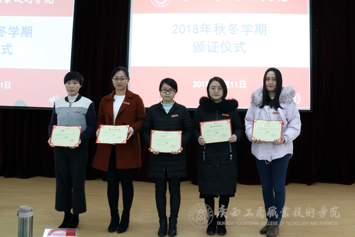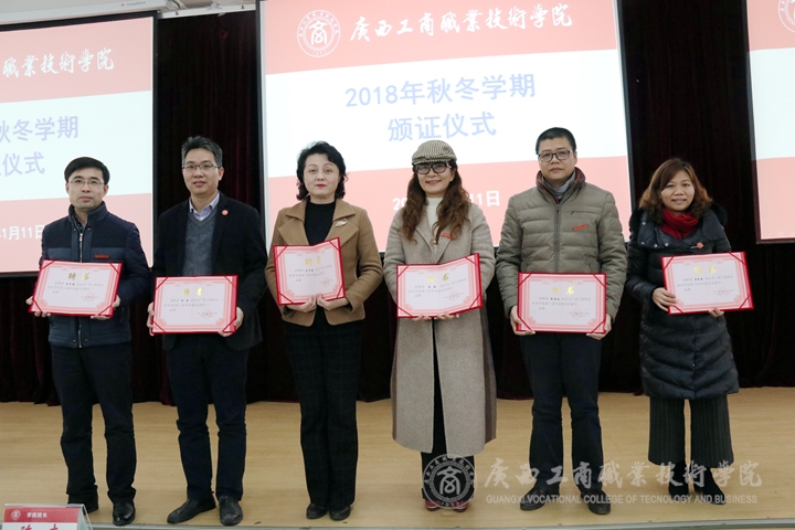 接著,陳杰分別為學院第三屆學術委員會劉萬英、李影球、陳梅、張居設、張首楠、林雯等委員頒發聘書,為“青年教師教學基本功競賽”榮獲一等獎的青年老師常榮榮、譚茜、黃蘭君、譚玉娥、黃雅璐等老師頒發獲獎證書。