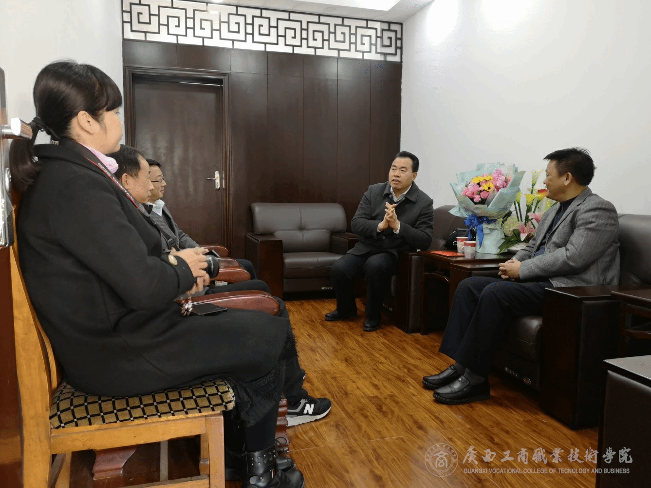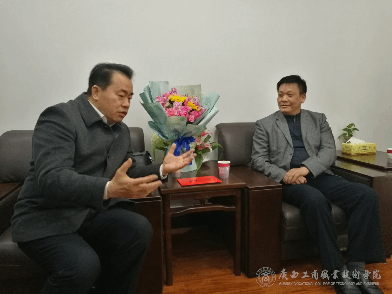 ? ? 2019年1月18日,西鄉塘區委常委、政法委書記藍日軍同志率隊到我院對學院二級教授陳杰院長進行走訪慰問,陳杰院長在學院接待室接待了藍日軍書記一行并開展座談交流。藍日軍書記代表西鄉塘區黨委對陳杰院長致以誠摯問候,表達了深切的關愛,向陳杰院長贈送了鮮花和慰問金。藍日軍書記表示,西鄉塘區黨委歷來重視各類專家人才,真切希望陳杰院長與城區之間繼續保持緊密的聯系。座談結束后,陳杰院長帶領藍日軍書記一行參觀了學院校園,并向介紹了學院的新風貌、新氣象。