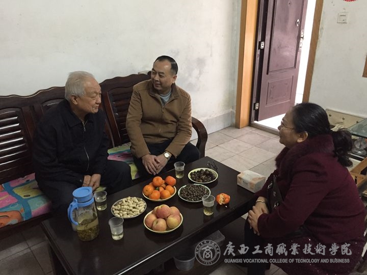 2019年1月25日,學院黨委覃武云書記在王桂玲副主席的陪同下,走訪慰問我院退休老同志廖精忠,關切地詢問他的退休生活和身體狀況,并送上了節日的慰問和新春的祝福。覃書記詳細地介紹了學院在校區建設方面的最新進展和發展愿景,特別是武鳴新校區未來的發展方向,以及實現千畝地萬人校的愿望。