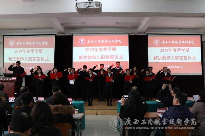 ? ? ? ? 會議的第二項議程是學院新進教師在黨委組織部(人事處)部長蔣百平的帶領下上臺進行入職宣誓儀式。“我宣誓:忠誠人民教育事業,貫徹黨的教育方針。為人師表,敬業愛生。 勤于育人,善于創新,勇于實踐,樂于奉獻。為國家立心,為民族鑄魂!”隨著一個個宣誓人的名字同時響起,全場響起一片熱烈的掌聲,表達著學院教職員工們對新同事的歡迎與祝賀。
