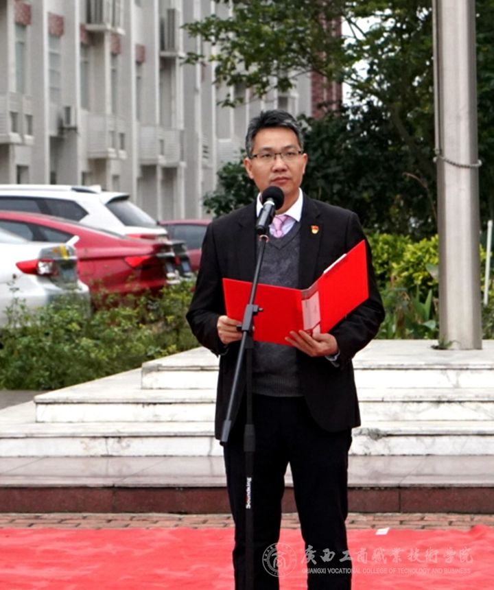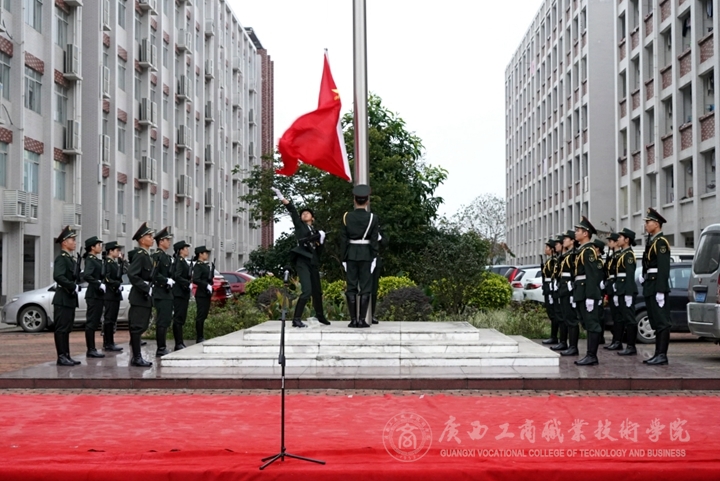 ? ? ? ?2019年2月25日上午,廣西工商職業技術學院在鵬飛校區和中堯校區同時舉行了新學期開學升旗儀式,學院領導和學院師生參加了升旗儀式。雖然春寒料峭,學院師生們齊聚在兩個校區的國旗臺下,卻斗志昂揚,朝氣蓬勃。兩校區升旗儀式分別由學院黨委學生工作部副部長林雯和財信系主任蘇波主持。學院黨委書記覃武云、學院院長陳杰分別在國旗下發表開學講話。