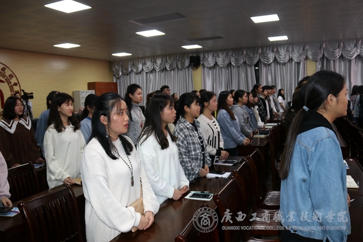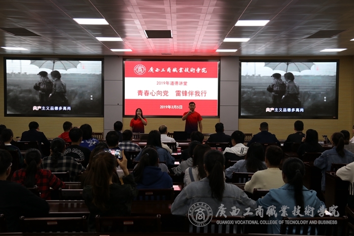 ??????? ?"學(xué)習(xí)雷鋒好榜樣,忠于革命忠于黨,愛憎分明不忘本,立場(chǎng)堅(jiān)定斗志強(qiáng)。"2019年3月5日晚上,廣西工商職業(yè)技術(shù)學(xué)院鵬飛校區(qū)教學(xué)樓報(bào)告廳響起了一陣簡(jiǎn)潔明快、鏗鏘有力的歌聲。這首曾經(jīng)感染和激勵(lì)著一代又一代人的《學(xué)習(xí)雷鋒好榜樣》,此時(shí)此刻,激起了在現(xiàn)場(chǎng)的廣商院人“唱雷鋒,學(xué)雷鋒,做雷鋒”的滿腔熱忱,營(yíng)造著向上向善、德行天下的良好風(fēng)尚。