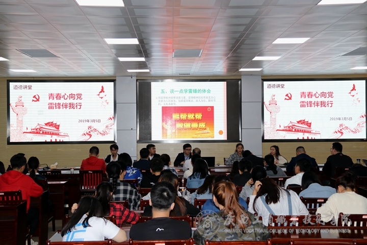??????? 齊唱一首學(xué)雷鋒歌曲《學(xué)習(xí)雷鋒好榜樣》,講授一堂樸實(shí)生動(dòng)的《雷鋒精神:一座不朽的道德豐碑》德育課,講一個(gè)雷鋒故事,讀一篇雷鋒日記,講述一個(gè)身邊的雷鋒故事,分享一次學(xué)習(xí)體會(huì)……這樣豐富多彩的安排,讓人心潮澎湃,受益匪淺,精彩停不下來(lái)。原來(lái),這是廣商院人在舉辦以“青春心向黨,雷鋒伴我行”為主題的特別的道德講堂活動(dòng)。