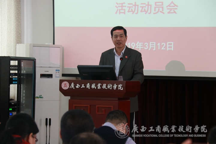 ? ? ? ? 2019年3月12日下午,我院于鵬飛校區(qū)報(bào)告廳召開(kāi)2019年師德師風(fēng)建設(shè)年活動(dòng)動(dòng)員大會(huì)。學(xué)院黨委書(shū)記覃武云、院長(zhǎng)陳杰、黨委副書(shū)記、紀(jì)委書(shū)記蒙啟成、副院長(zhǎng)李維、副院長(zhǎng)陳寧春出席會(huì)議,學(xué)院教職工參加動(dòng)員大會(huì)。本次大會(huì)由副院長(zhǎng)李維主持。