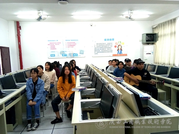 ? ? ? ? 而13日下午,廣策1701班的課堂大合唱也在課堂上正式展開,與廣策1702班不同的是,本次課堂演唱加入樂器元素,由沈威駿同學友情演出吉他伴奏。