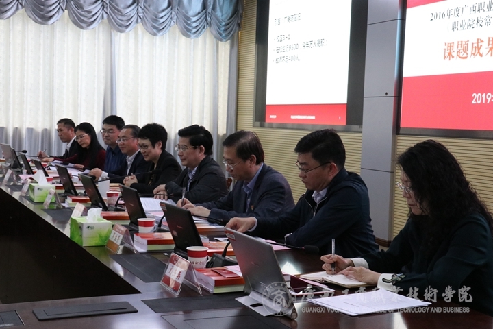 ??????? 廣西教育學院院長袁旭教授,廣西農業職業技術學院院長楊昌鵬教授,廣西建設職業技術學院院長彭紅圃教授,廣西藍天航空職業學院院長陳俊偉教授,柳州鐵道職業技術學院黨委書記周群教授,廣西工業職業技術學院黨委副書記羅生芳教授,廣西國際商務職業技術學院副院長劉杰英教授,北海藝術設計學院副院長黃艷芳教授,廣西經貿職業技術學院教務科研處副處長、自治區教育廳職成處副處長邱金林出席會議并擔任評鑒專家。課題組成員和著作撰稿人參加了會議。研討會由我院副院長李維教授主持。