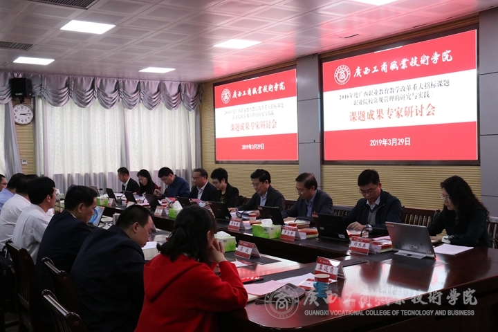 ??????? 2019的3月29日下午,由我院院長陳杰教授主持的,2016年廣西職教重大招標課題《職業院校常規管理應用研究與實踐》成果專家研討會在我院鵬飛校區視頻會議室舉行。會議就課題主要成果的2部著作《治校年輪》《辦學方略》 進行專題研討和學術交流。
