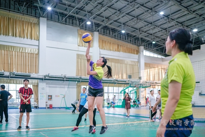 ? ? ? ? 賽場上,每個隊飽藏實力,運動力驚人。老師們各施絕技,發球、起跳、攔網、扣球,每一次精彩的傳球與得分都引來歡呼陣陣,每個環節都凝聚著大家的智慧與團結。只見現場一位老師高跳猛力扣殺,“加油、加油”的助威聲鏗鏘有力,此起彼伏。在對手的猛烈進攻、扣殺之下,隊員們不畏艱險、頑強撲救,互相打氣加油,在歡笑與汗水中結束了每一場比賽。
