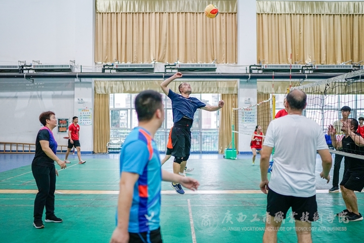 ? ? ? ? 為豐富我學院教職工課余文化生活,鍛煉身體,提高身體素質,增加團隊凝聚力,促進全體教職員工身心健康。學院“壯族三月三”民族文化體育節之學院教職工氣排球比賽昨日在文體館全面“開打”。學院所有分工會和工會小組積極組隊全部出征,本次比賽共分男隊7隊、女隊11隊,采用抽簽分組淘汰制,每局比賽采用三局兩勝制。