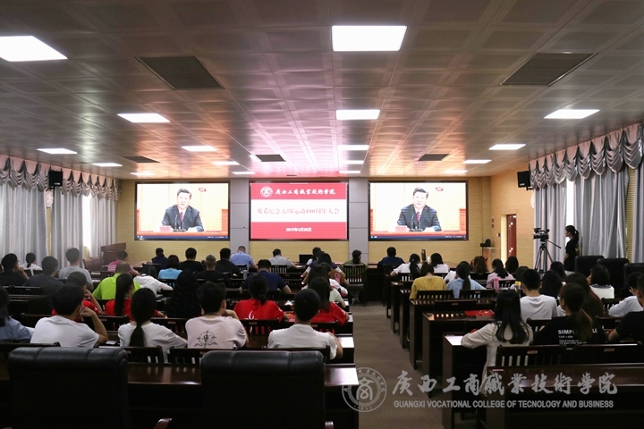 ??????? 4月30日上午,紀念五四運動100周年大會在北京人民大會堂隆重舉行。中共中央總書記、國家主席、中央軍委主席習近平在會上發表重要講話。我院黨委高度重視,組織各部門、各單位通過多種形式收聽收看大會直播實況。當日上午10點30分,在鵬飛校區教學樓視頻會議室,學院黨委副書記、紀委書記蒙啟成、學院副院長陳寧春、黨委學生工作部及各系中層干部、黨委宣傳部、全體專職團干和專職輔導員、青年教工團支部、青年教師入黨積極分子、發展對象、預備黨員集中觀看了大會直播。