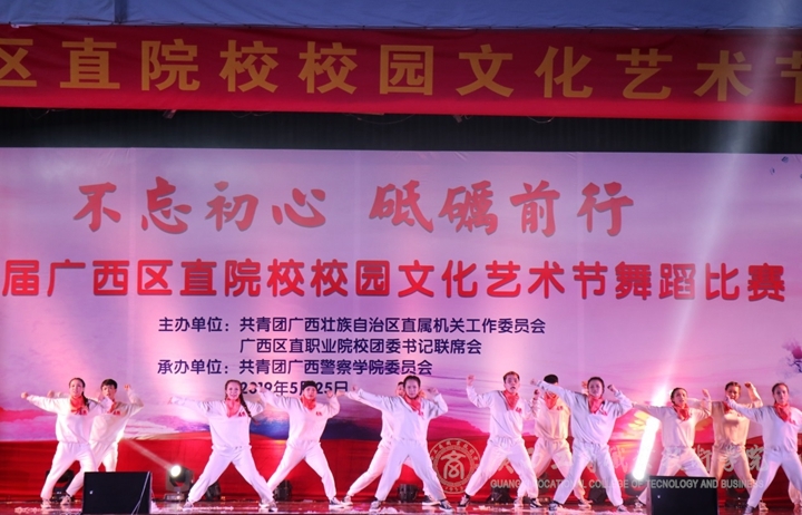 ??????? 本次比賽高職組共有十七支來自全區(qū)各區(qū)直院校的隊伍參與角逐。舞蹈《龍魂》以中國龍為象征,傳承中華民族載歌載舞的風(fēng)俗文化,其中加入佤族音樂舞蹈元素,將中國風(fēng)元素融入流行現(xiàn)代舞曲中,通過歡快的音樂,富有力量的舞蹈動作,來展現(xiàn)當代青年朝氣蓬勃地精神風(fēng)貌。在整個比賽中,舞蹈隊的同學(xué)們以飽滿的熱情,動感的舞姿,感染著現(xiàn)場的每一位觀眾,贏得了評委們的關(guān)注和肯定。