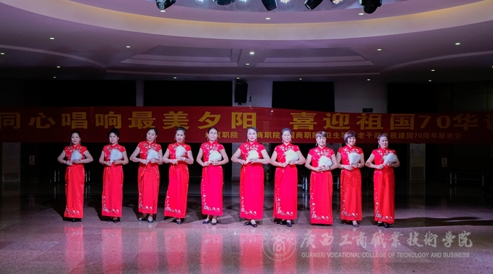 ? ? ? ? 聯(lián)歡活動(dòng)在廣西衛(wèi)生職業(yè)技術(shù)學(xué)院15人合唱組演唱的《我和我的祖國(guó)》的優(yōu)美旋律中拉開(kāi)帷幕。由我院選送的節(jié)目獨(dú)唱《我家在中國(guó)》和T臺(tái)走秀《旗袍秀》與兄弟院校選送的小組合唱《我的祖國(guó)》、《泛水荷塘》,舞蹈《江南雨》、《山歌好比春江水》、《敬祝毛主席萬(wàn)壽無(wú)疆》、《把你帶回我的草原》、《祝福祖國(guó)》,小提琴獨(dú)奏《我和我的祖國(guó)》,葫蘆絲獨(dú)奏《映山紅》等節(jié)目精彩紛呈,與會(huì)領(lǐng)導(dǎo)和現(xiàn)場(chǎng)觀(guān)眾對(duì)演出的藝術(shù)水平和組織工作給予了充分肯定和贊揚(yáng)。