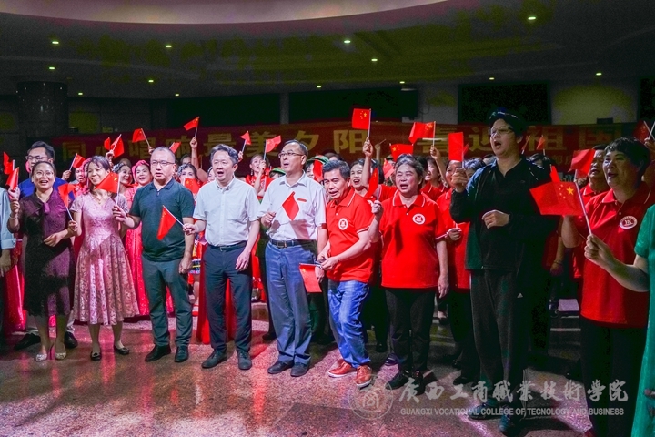 ? ? ? ? 6月5日下午,我院工會(huì)聯(lián)合廣西經(jīng)貿(mào)職業(yè)技術(shù)學(xué)院、廣西國(guó)際商務(wù)職業(yè)技術(shù)學(xué)院、廣西衛(wèi)生職業(yè)技術(shù)學(xué)院三所院校工會(huì)在南寧市老干部中心共同舉辦“同心唱響最美夕陽(yáng),喜迎祖國(guó)70華誕”離退休老同志聯(lián)歡活動(dòng)。4所院校的領(lǐng)導(dǎo)和離退休老同志代表共120多人一起聯(lián)歡。學(xué)院黨委副書(shū)記蒙啟成出席活動(dòng)。
