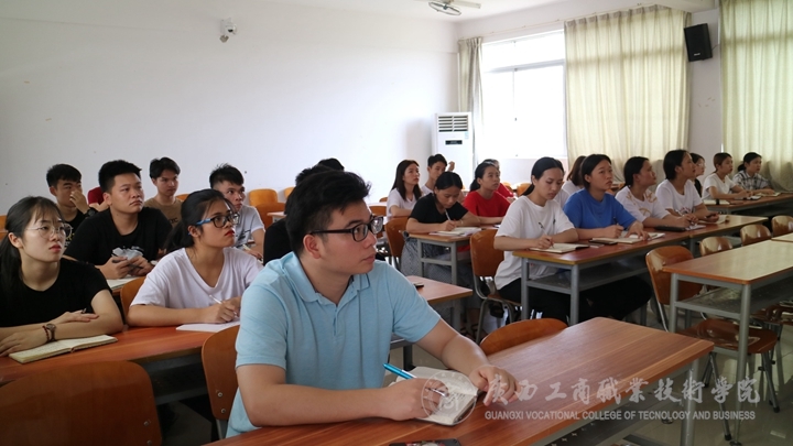 ? ? ? ? 根據院黨辦發〔2019〕14號(中共廣西工商職業技術學院委員會辦公室關于印發《廣西工商職業技術學院創建“新時代講習所”工作實施方案》的通知)文件精神,為進一步學習貫徹習近平新時代中國特色社會主義思想,引導廣大干部群眾和師生學理論、用政策、促發展,激發干事創業的積極性、創造性,把習近平新時代中國特色社會主義思想和黨的十九大精神落實到各方面,2019年6月12日中午,經管系黨總支“新時代講習所”正式開講,經管系黨總支書記莫春華同志首講,經管系團總支副書記歐少亮同志以及第五屆精英班學生參加了此次課程。