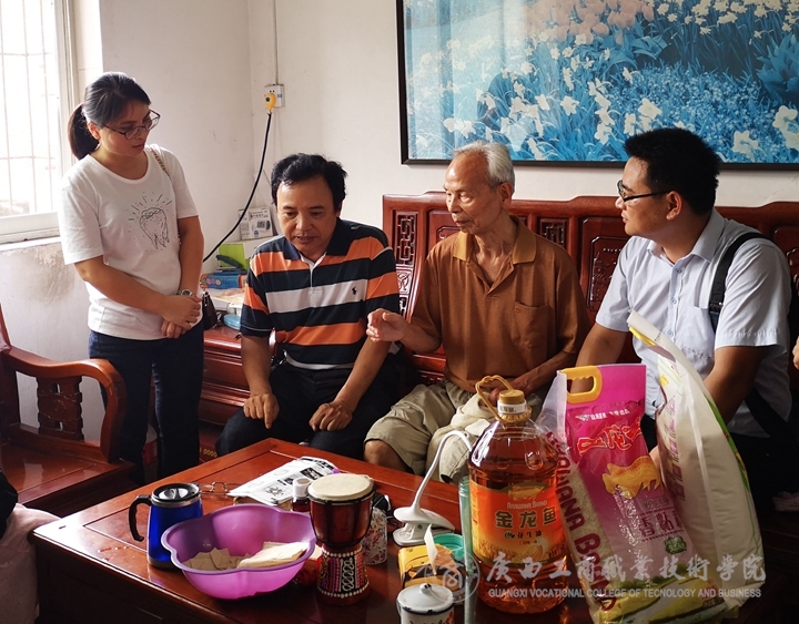 ? ? ? ? 為貫徹落實《中共廣西工商職業技術學院委員會關于印發< 中共廣西工商職業技術學院委員會慶祝建黨98周年系列活動工作方案>的通知》(廣商院黨〔2019〕9號)文件精神,繼續教育部黨支部抓好在職黨員到社區為群眾服務工作,持續開展黨內關愛幫扶,深入聯系社區開展“雙報到”服務活動。在“七一”前夕,為關懷社區生活困難的老黨員,繼續教育部黨支部與永和社區黨總支,帶著黨和政府的關懷與溫暖,到困難老黨員蘇其中、黃沛云同志家進行走訪慰問活動,以實際行動傳遞濃濃愛心。