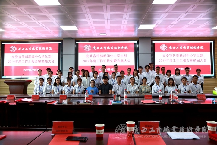 ? ? ? ? 2019年7月4日下午,學院黨委宣傳部新聞中心2018-2019學年年度工作匯報會暨換屆大會在鵬飛校區視頻會議室召開。學院黨委宣傳部副部長林雯、部長助理陳宇寧、新聞中心指導老師莫惘、馮艷瓊、王衛蘭,新聞中心全體成員及學院各大學生組織代表參加了本次大會。本次會議由新聞中心18級成員高傳靖主持。