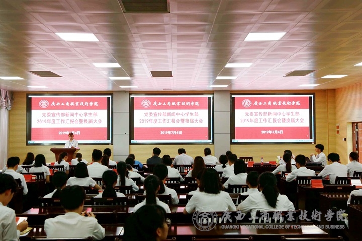 新聞中心17級會長閉蘭瓊在會上作新聞中心2018—2019學年年度工作總結匯報。在學院領導、宣傳部老師正確的指導下,新聞中心緊緊圍繞學院宣傳工作,堅持正確的輿論向導,學習黨的新思想,精益求精,銳意進取,開拓創新,為學院的建設和發展、為繁榮校園文化和豐富同學們的課余文化生活做出了積極的努力。