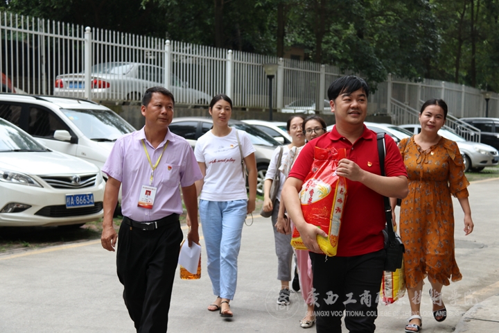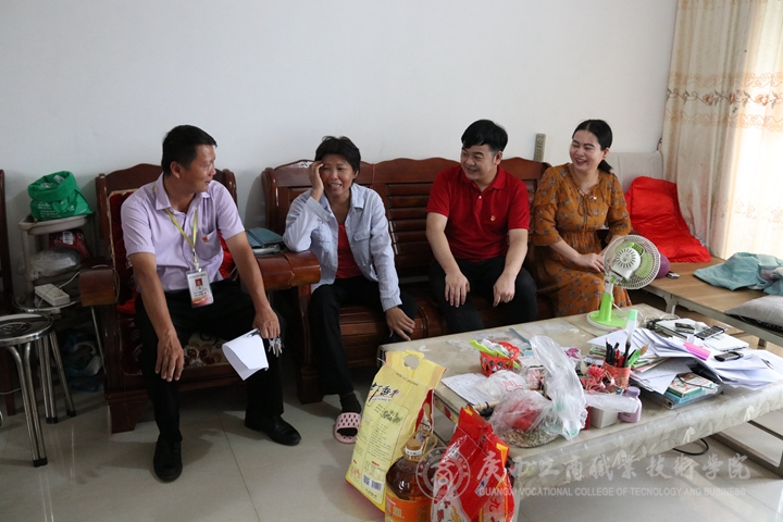 此外,黨支部同志與社區黨支部書記韋海建等還一同前往社區兩戶困難家庭走訪、慰問,悉心關心他們在生活、工作和子女教育等方面的困難,與他們親切交流,并送上慰問品。據悉,其中一戶困難家庭還榮獲“光榮之家”的稱號。他們對教師來訪慰問表示感謝。