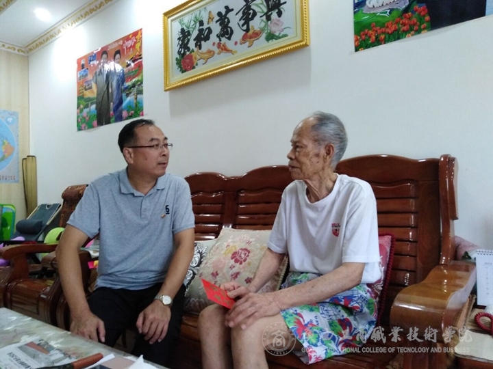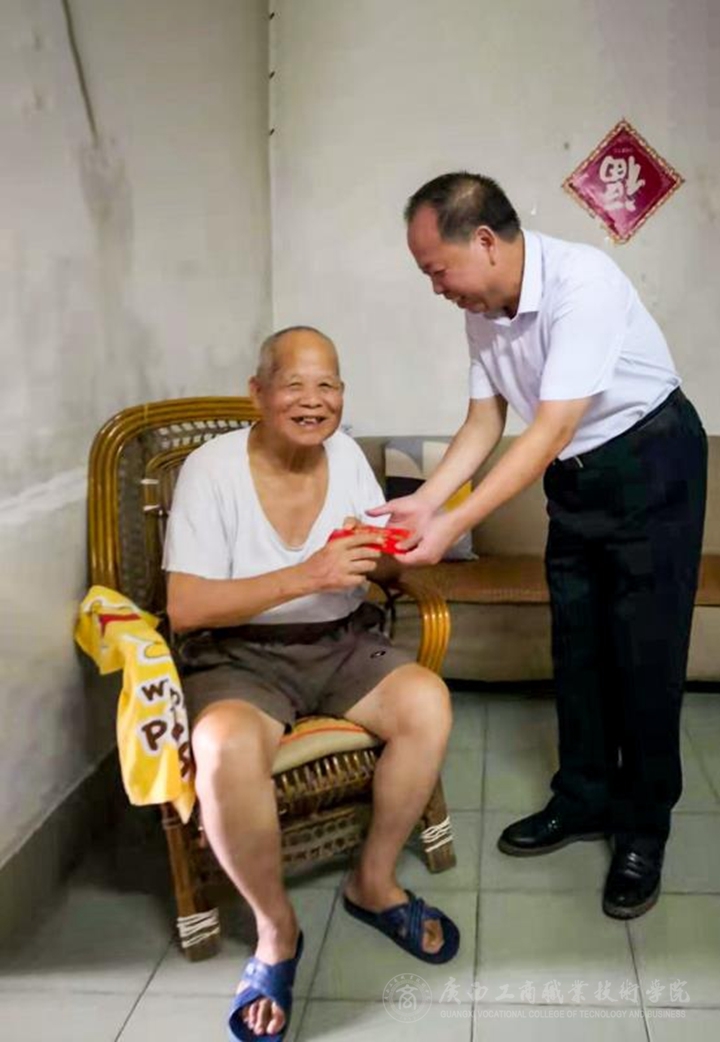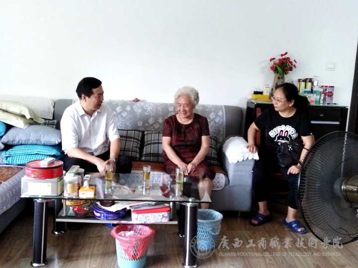 ?????? 在離退休老同志覃澤光的家里 ,我院黨委書記覃武云握著他的手,感謝他為學院發展做出的突出貢獻,并囑咐覃澤光老同志的家人照顧好老人的日常起居。在文九齡老同志家,李維院長希望他能保重身體,繼續為學院發展建言獻策。