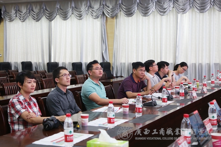 ??????? 會上,覃壯才處長、黃云奇副處長一行觀看了我院宣傳片,聽取了學(xué)院領(lǐng)導(dǎo)關(guān)于學(xué)院建校以來的歷史,辦學(xué)情況,基礎(chǔ)建設(shè),特色專業(yè)等方面的簡要匯報。