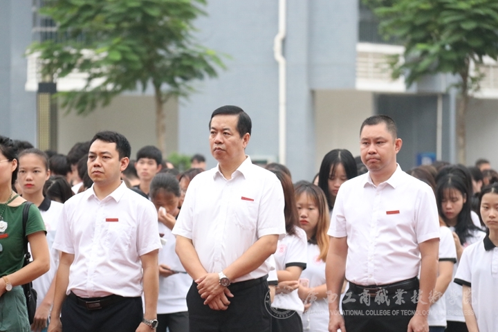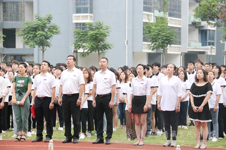 ??????? 2019年8月26日清晨,我院2019年秋季學期開學升旗儀式于中堯校區田徑場上隆重舉行。參加本次升旗儀式的有學院領導、各部門、各單位中層領導、教師代表以及財信系18級全體學子。升旗儀式由財信系主任蘇波主持,學院院長李維同志、教師代表楊艷、學生代表林鈞民先后進行國旗下講話。
