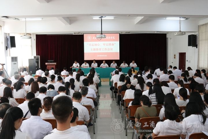 ? ? ? ? 9月16日上午,中共廣西工商職業技術學院委員會在鵬飛校區報告廳召開“不忘初心、牢記使命”主題教育工作會議。會議貫徹落實黨中央、自治區黨委關于主題教育的部署要求,對全院主題教育工作進行全面動員部署。自治區黨委“不忘初心、牢記使命”主題教育第七巡回指導組組長周懷營、副組長趙煥春、副組長俞健出席會議,俞健在會上發表講話,指導組其他同志到會指導。學院黨委書記覃武云在會上作動員講話,學院黨委副書記、院長李維主持會議。