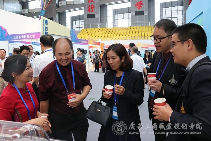 ? ? ? ? 9月19日,以“交流互鑒 合作共贏 構(gòu)建職教共同體”為主題的2019中國(guó)—東盟職業(yè)教育聯(lián)展暨論壇,在廣西建設(shè)職業(yè)技術(shù)學(xué)院舉行,本屆聯(lián)展暨論壇由教育部和廣西壯族自治區(qū)人民政府共同主辦、自治區(qū)教育廳具體承辦。教育廳廳長(zhǎng)唐咸僅、教育廳副廳長(zhǎng)黃雄彪親臨我院展區(qū)指導(dǎo)。李維院長(zhǎng)受邀參加了教育聯(lián)展暨論壇的開(kāi)幕式、中國(guó)-東盟職業(yè)教育高峰論壇、產(chǎn)教對(duì)話會(huì)等活動(dòng)。我院教務(wù)科研處副處長(zhǎng)李紅梅教授、鄧潔老師,財(cái)信系李影球教授,公共基礎(chǔ)部韋育芳等老師參加了此次聯(lián)展,譚茜、仇志清老師作為翻譯和陪同熱情接待來(lái)自泰國(guó)的外賓。