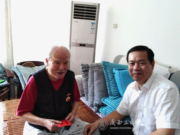 ? ? ? ? 在慶祝中華人民共和國成立70周年之際,2019年9月27、29日,學院黨委書記覃武云、院長李維率領慰問組分別走訪慰問了我院兩位離休干部,學院領導親手為老干部戴上紀念章。覃書記、李院長向老干部噓寒問暖,關心他們生活及身體狀況,詢問他們的生活需求,叮囑他們要保重身體,并對老干部心系學院、為學院發展作出的貢獻表示感謝!老干部們表示,感受到了黨和政府以及學院對離休干部的關懷和溫暖,將繼續發揚優良傳統,"不忘初心、牢記使命”,支持學院建設,祝學院發展越來越好!