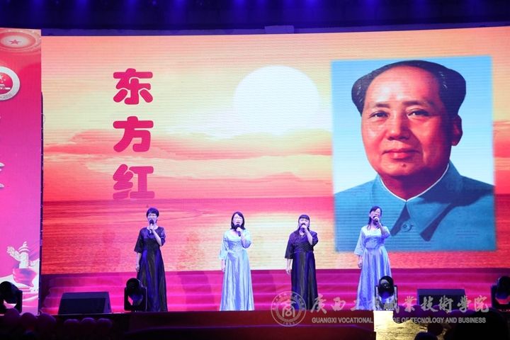 ??????? 晚會在學院合唱團、學院安全督察隊帶來的《今天是你的生日,中國》中拉開了帷幕,表演者洪亮的歌聲加上熱血澎湃的朗誦,頓時把人拉進了“愛國情懷”的氛圍中;學院安全督察隊身披軍裝,手護國旗,以整齊的步伐一步步的走向國旗桿,在全體老師同學的注目禮中完成了升旗儀式;隨后是學院大學生藝術團舞蹈隊、禮儀隊、學院安全督察隊帶來的《永遠的長征》,展現了中國長征時期的艱辛;學院合唱團帶來的《保衛黃河》用歌聲書寫了我們人民的“愛國情懷”;思政部的陶艷蘭老師、覃田老師、韋慧妮老師、劉源溢老師帶來的《為有犧牲多壯志》,描述了毛澤東主席,為了祖國奉獻自我的精神,紀念偉大的毛主席;離職退休教師代表、在職教師代表、校友代表、教工子女代表、在校生代表帶來的《我愛你中國》,她們用自己愛國情感,為祖國獻上了最好的禮物;楊柳老師帶來的演唱《在希望的田野上》,她用嘹亮熱情的歌聲,抒寫了祖國未來無限美好的希望。晚會間隙,還穿插了抽獎和猜歌互動環節,現場觀眾熱情澎湃,紛紛融入其中。