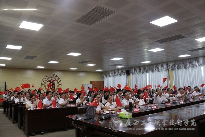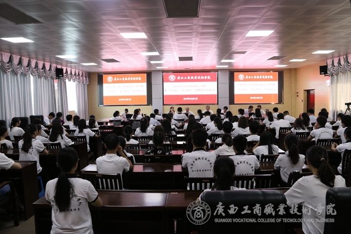 ??????? 覃武云帶領大家回顧了我院建校以來發展歷程,從1953年成立廣西壯族自治區糧食干部訓練班,1957年12月-1963年冬,學校因“反右”停辦;1963年冬廣西糧食干部學校恢復辦學;1969年我校與廣西財經干部學校、廣西商業干部學校、廣西供銷干部學校4校合并為廣西財貿干部學校,1970年學校教職員工全部調離或下放;1979年9月廣西糧食學校在校生已達720人,當年招生303人,共6個班;1989年廣西糧食學校在校師生人數902人,1993年3月,廣西糧食學校更名為廣西貿易經濟學校,1994年被國家教育部確定為國家重點中專學校;1999年9月,廣西貿易經濟學校在校人數2828人,招生錄取新生880人;2004年6月,在廣西經濟貿易技工學校并入廣西貿易經濟學校的基礎上升級為廣西工貿職業技術學院;2006年3月,廣西工貿職業技術學院更名為廣西工商職業技術學院;2009年8月13日我院被區教育廳和財政廳確定為“自治區示范性高等職業院校重點培育單位”;2009年9月9日我院鵬飛校區建設項目開工奠基典禮隆重舉行;2012年9月6日上午,鵬飛校區學生宿舍、教學樓、食堂通水、通電,下午4時58分學院舉行鵬飛校區大門揭牌儀式,廣西工商職業技術學院鵬飛校區正式啟動;2017年11月27日舉行“廣西工商職業技術學院武鳴新校區建設項目開工奠基儀式”;2019年學院現有鵬飛、中堯、新村、武鳴四個校區,學校連續十一年獲廣西普通高等畢業生就業創業工作突出單位,學院近五年教學科研成果豐碩,獲教育部確定為第二批現代學徒制試點單位,獲教育部認定高等職業教育創新發展行動計劃項目3項。獲廣西高職示范特色專業及實訓基地建設項目5個,廣西職業教育專業發展研究基地1個,自治區專業教學資源庫3項。廣西社會科學優秀成果獎1項等。教師和學生在國家級、自治區級各類比賽中屢獲佳績,科研碩果累累。
