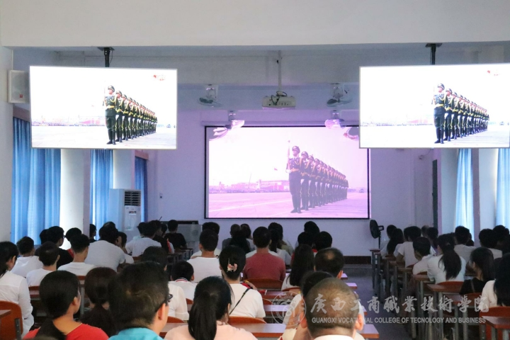 ??????? 10月1號上午10點,為慶祝中華人民共和國成立70周年,學院副院長李仕欽、副院長陳寧春、學院各部門、各單位中層干部、師生代表和家屬代表集中在中堯校區第二教學樓觀看央視直播的國慶盛典。