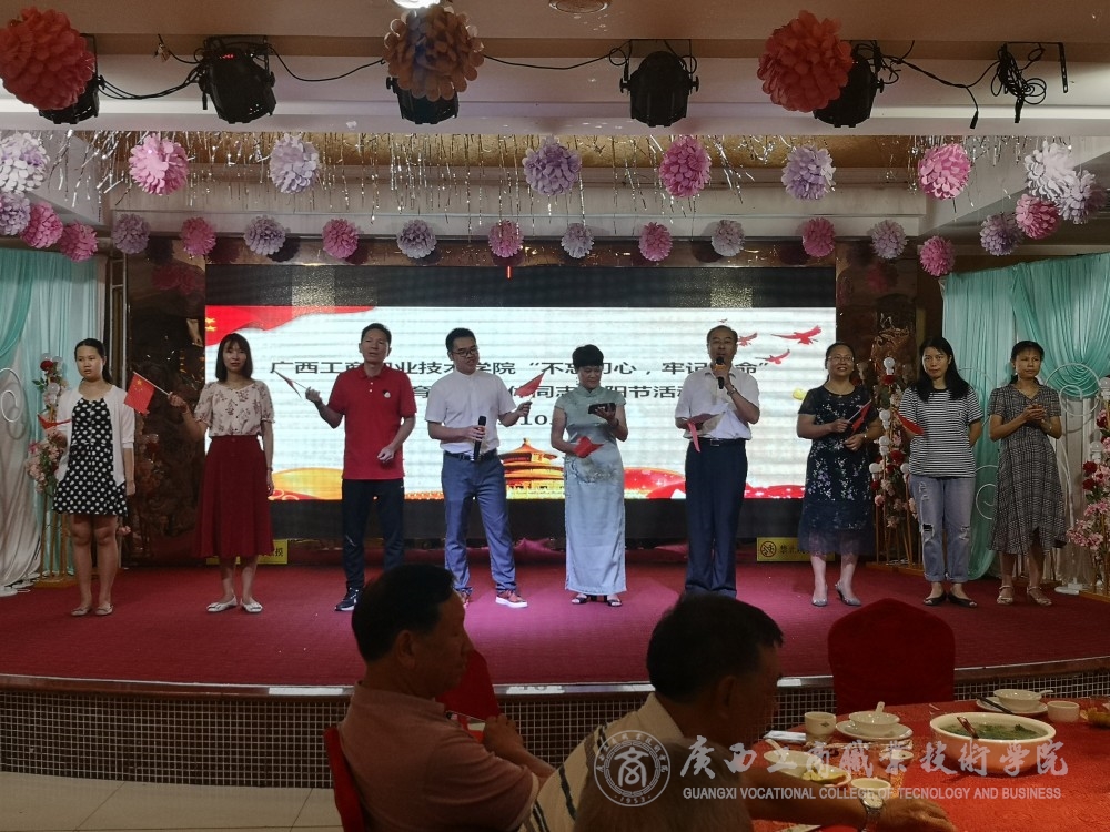 ? ? ? ? 金秋時節,又逢重陽。2019年10月10日,學院工會(離退辦)舉行內容豐富的“不忘初心、牢記使命”主題教育暨離退休同志重陽節活動。將主題教育落實到老同志系列活動中,力求主題教育取得實效。學院院長李維,黨委副書記、工會主席蒙啟成同志出席活動。