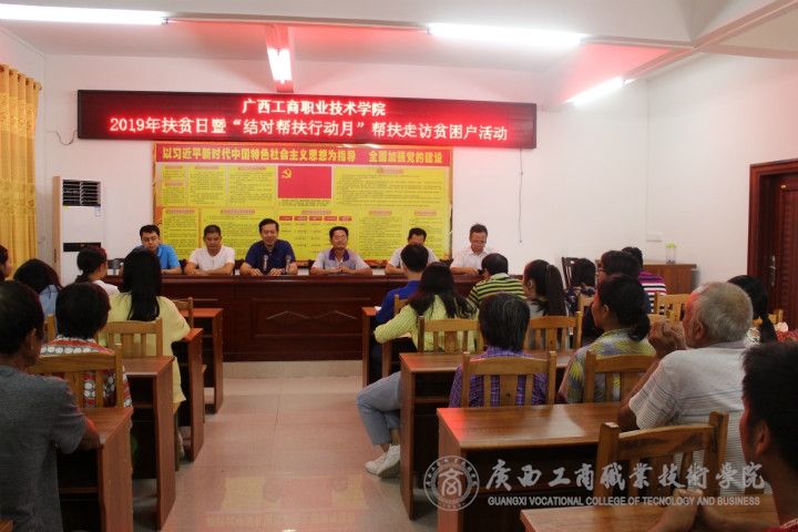 ? ? ? ? 在全國上下積極開展扶貧日系列活動之際,結合“不忘初心、牢記使命”主題教育安排,教務科研處黨支部、財信系黨總支于10月17-18日,到陸川縣清湖鎮那若村開展了2019年扶貧日暨“結對幫扶行動月”幫扶走訪貧困戶活動。本次活動由廣西工商職業技術學院院長、黨委副書記李維帶隊,活動共有18名黨員教師參加,為那若村49戶貧困戶送去慰問金1.47萬元。
