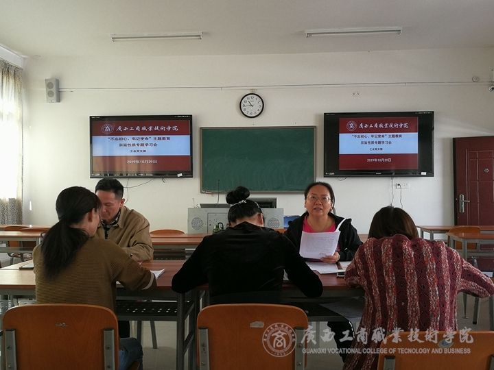 ? ? ? ?為進(jìn)一步推進(jìn)“不忘初心、牢記使命”主題教育工作, 10月29日上午,工會(huì)黨支部在鵬飛校區(qū)教室圍繞宗旨性質(zhì)開展專題學(xué)習(xí)研討,全體支部黨員參加研討。
