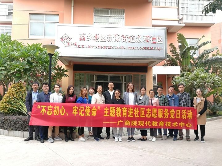 ? ? ? ?為進(jìn)一步踐行黨的宗旨,做好“不忘初心、牢記使命”進(jìn)社區(qū)志愿服務(wù),結(jié)合在職黨員社區(qū)“雙報到”、“全民終身學(xué)習(xí)活動周”活動,現(xiàn)代教育技術(shù)中心黨支部于11月1日,組織支部全體黨員、入黨積極分子等赴南寧市中堯路永和社區(qū)開展“網(wǎng)絡(luò)信息安全知識進(jìn)社區(qū)”主題黨日活動。