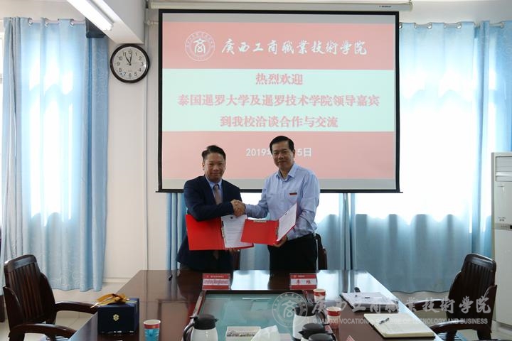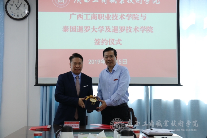 ? ? ? ? 會(huì)議最后,李維院長(zhǎng)與暹羅科技學(xué)院院長(zhǎng)Jomphong Mongkhonvanit共同簽署了合作協(xié)議,并互贈(zèng)了代表各自院校的禮物。院長(zhǎng)李維還帶領(lǐng)暹羅科技學(xué)院院長(zhǎng)Jomphong Mongkhonvanit一行人參觀我院的教室和電商實(shí)訓(xùn)室。