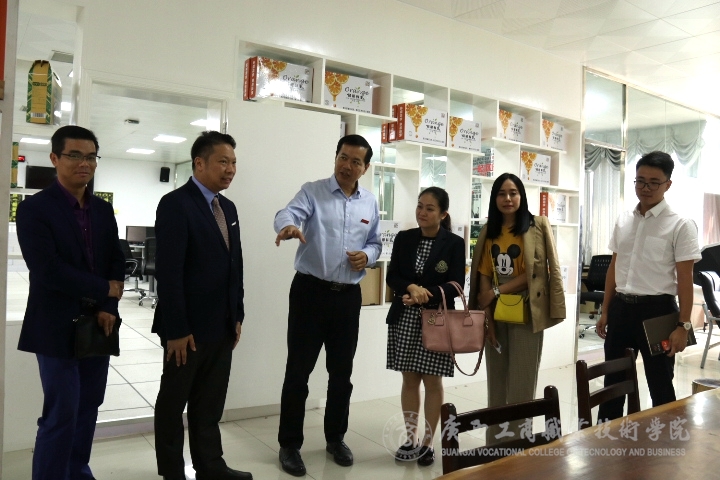(院長(zhǎng)帶領(lǐng)客人參觀電商實(shí)訓(xùn)室)