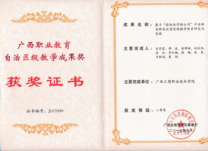 (2017年廣西職業教育自治區級教學成果二等獎)