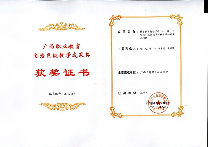 (2017年廣西職業教育自治區級教學成果三等獎)