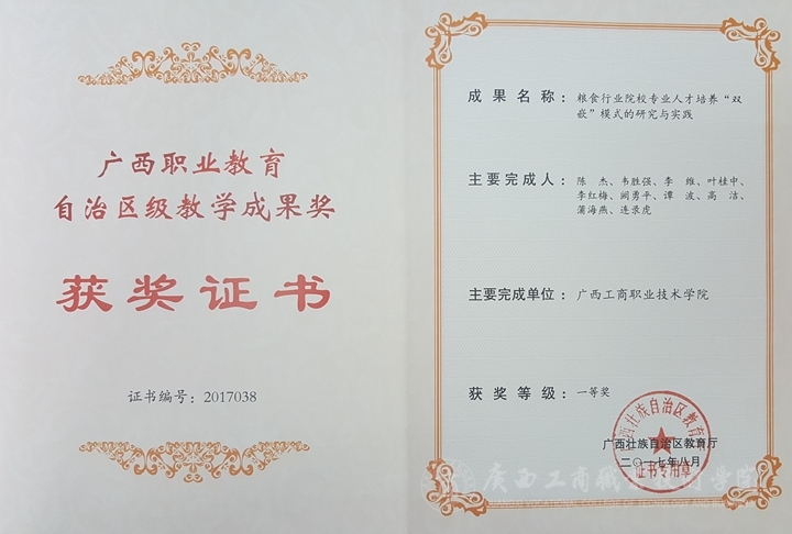 (2017年廣西職業教育自治區級教學成果一等獎)