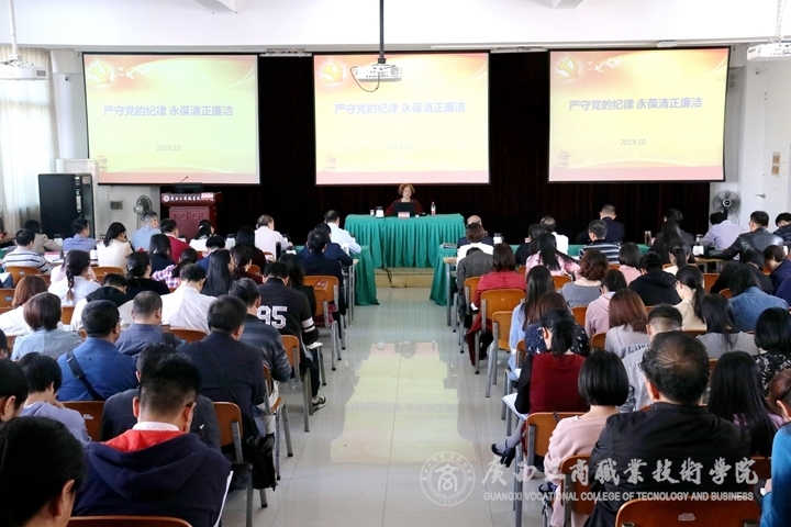 ? ? ? ? 加強廉政文化建設,營造廉潔校園氣氛。編印50期《廉政教育》電子讀物約120萬字,出版12期宣傳板報,邀請7名專家進校做廉潔教育主題講座。組織全體教職員工觀看學習《打鐵還需自身硬》、《廣西三起縣級扶貧辦主任嚴重違紀案件警示錄》等廉潔視頻。積極向全區教育系統推薦廉政文化作品,有3部作品獲得二等獎,有1部作品獲得三等獎。承擔1個自治區教育廳廉政課題、1個校內廉政課題,1篇論文入選自治區教育黨風廉政建設“兩個責任”專題研究論文集。五年來,開展主題警示教育活動5次,組織6批353人次到廉潔教育基地接受現場教育。通過各種形式的教育宣傳,營造了風清氣正的校園氛圍。