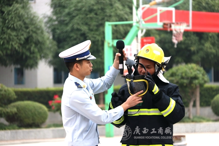 ? ? ? 為了進一步提高師生的消防安全意識,增強師生安全防范和防火自救能力。11月12日下午,學院與廣西消防總隊共同舉辦的消防安全培訓及演練活動于鵬飛校區籃球場舉行。學院副院長陳寧春出席活動,2019 級安全教育課的任課教師及全體輔導員、后勤管理處(保衛處)教師、物業服務人員、食堂員工、學生代表等參與演練場觀摩。