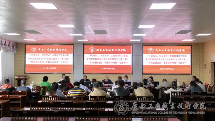11月14日下午,中共廣西工商職業(yè)技術(shù)學院委員會于鵬飛校區(qū)教學樓視頻會議室召開“不忘初心、牢記使命”主題教育讀書班暨學院黨委理論學習中心組專題學習(第三期)“學先進找差距、受警示存戒懼”專題研討會。學院領(lǐng)導,黨委委員,學院各部門、各單位主要負責人(中共黨員),學院工會、團委主要負責人,其他處級以上的黨員領(lǐng)導干部參加了研討,學院黨委書記覃武云主持本次專題研討。
