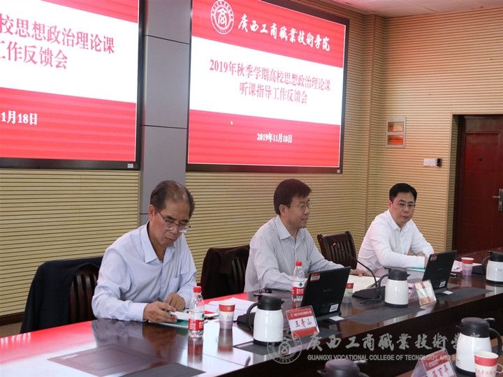 ? ? ? ?反饋會由檢查組組長趙君書記主持。趙君書記從三個方面對我院思政理論課程建設取得的成績給予了充分肯定:(1)學院黨委高度重視,政治敏銳性強,領導機制和工作機制落實到位。(2)學院領導高度重視思政課教師隊伍建設。實行導師傳幫帶、以賽促教等措施加強隊伍建設。此外,所有思想政治理論課教師均是馬克思主義理論相關專業畢業,這是學院思政課教師隊伍的一大優點。(3)教學改革亮點多。一是以“五個一”系統推進思政課建設,取得良好了的教學效果;二是在全區高職院校中率先開設“中國近代史綱要”課程,起到了很好的帶頭作用;三是“思政沙龍”建設效果好,沙龍成員通過社會實踐、學習討論等形式,極大地激發了對思政課的學習熱情。