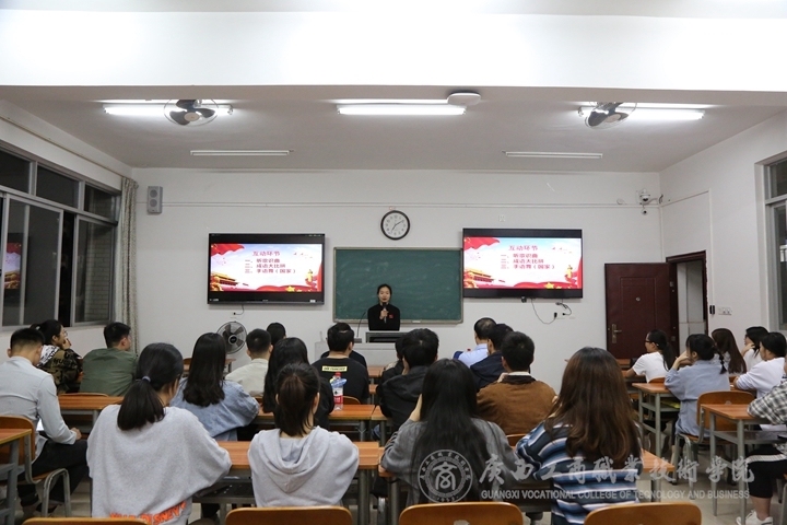 ? ?班會一共分為三個環節。首先,由酒店1804班謝瑞珍同學向同學們宣講愛國相關知識。隨后,全班同學表演了手語舞《國家》。最后,李維開講的形勢與政策課程,把本次班會的推向了高潮。